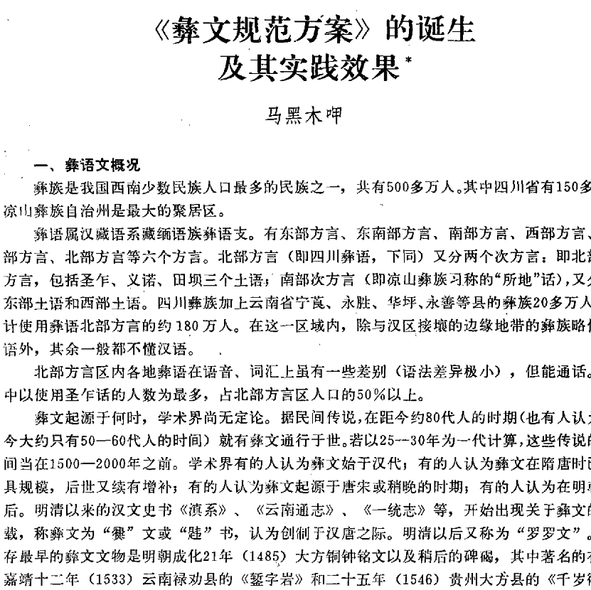二、彝语文工作的回顾和《彝文规范方案》的诞生