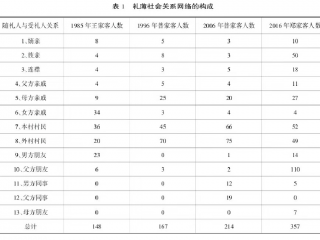 马春波、李少文(2004)采用定量分析法对村庄的人情消费方式、状况以及人情消费对家庭经济生活的影响进行调查、研究,提出人情消费得以延续的主要原因在于维持关系网络、信息交流等方面发挥的作用。此外,文化惯性传统也是人情消费得以延续的重要原因。尚会鹏(1996)在《豫东地区婚礼中的“随礼”现象分析》一文中通过对西村婚礼上四份“礼单”的分析,考察了西村人际网络的构建。作者指出,村落中的随礼现象具有普遍性、等价性和互助性三个特点。黄鹏进通过对鄂东南农村一次婚礼礼金数额的分析,考察了亲缘、地缘以及业缘关系中决定所送礼金数额的不同因素与原则,即亲缘关系中,所送礼金多寡依亲疏远近而定,地缘关系中,以是否同属于一个村庄为标准,而在业缘关系中,则遵循经济理性法则。