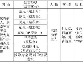 凉山彝族民间日常生活皆受制于神鬼,大到婚丧嫁娶,小至头痛脑热,无不认为是神鬼使然。人与神鬼的交通者由毕摩、苏尼承担,在宗教职能上,毕摩与苏尼有所区别:毕摩诵经、安神、祭祖,苏尼(彝族巫师男女有别,男为苏尼,女为嫫尼)赶鬼;毕摩以经为据,引经据典,重在口头,苏尼以身体动作配以口头诅咒,重在行为。不同的表现方式决定着毕摩与苏尼宗教行为的差异,由此又使得二者所依赖的神具和法器不同:毕摩靠经书祭祖,苏尼借皮鼓驱鬼。苏尼赶鬼的宗教行为就是通过巫师自身身体的动律、口中的念诵以及皮鼓的敲击来实现驱鬼目的。毕摩的祭仪体现为静态展演,苏尼的巫术则是动态行为。苏尼巫舞(皮鼓舞)仪式中的叙事形态从时间轴上体现为“作法——‘阿散’神附体——赶鬼——插鬼、盖鬼”的线性铺叙,在空间上体现为“苏尼(嫫尼)与‘阿散’神——苏尼(嫫尼)与病人——苏尼(嫫尼)与鬼魅”(或“巫师与神性世界、现实世界、鬼魂世界”)的多重交通。在驱鬼的整体环节中,不仅有苏尼(嫫尼),还有其助手的配合,巫师通过身体呈现的不同动律、念诵的咒词和皮鼓鼓点节奏将文学叙事的文字符号转化为视觉符号。苏尼巫术的整个过程实际呈现出较为完整的民俗叙事结构,其诉求的基本内容主要包括因由、环境、主体、客体等要素(详见下表),而叙事结构则由“撵鬼”“打‘死而’”“镇鬼”等若干环节构成,由此通过苏尼的舞蹈形体和外在的法器、环境等共同构成身体叙事的结构和内涵。彝族学者王昌富先生对苏尼巫术民俗的田野考察有过非常详尽的描述,鲜德华先生也曾长期致力于对凉山彝族苏尼皮鼓舞资料的收集和整理工作,并对苏尼巫舞的动律有过深入研究。