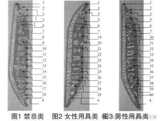 一直以来,彝族他留人认为他们没有本民族 传统文字。当笔者第一次到永胜县彝族傈僳族乡营 山、玉水、双河村田野调查时与“铎系”祭司谈起 他留人是否有传统文字,“铎系”祭司说:“我们 他留人就没有本民族传统文字了,所以我们“铎 系”祭司念诵有关祭词时才画图画。”所以“铎 系”祭司自认为他们在主持丧葬仪式中用的图符不 是文字。但是随着文字定义外延的拓宽和相关学者 的深入研究,有学者把“铎系”祭司在主持丧葬仪 式中所使用的图符初步界定为“铎系文字”,并得 到了有关文字学家的肯定。“铎系”祭司文字的数 量有扩充趋势,笔者2010年1月深入实地调查时收集 到40个(不含重复)“铎系”祭司图符文字,2014 年7月再去实地调查时“铎系”祭司提供了68个(不 含重复)图符文字。但是“铎系”祭司在主持丧 葬仪式中还是常用先前的40个图符文字,所以本文 提供的是40个“铎系”祭司图符文字。彝族他留人 有“铎系”祭司图符文字,那么“铎系”祭司图符 文字是怎么用?是否有“铎系”祭司图符文字记载 或记述的文献?到目前为止,尚未有人提出“铎 系”祭司图符文字记载或记述的文献。然而,彝族他留人“铎系”祭司在主持丧葬仪式中把40个图符 文字有序完整地写在三块木板上,俗称“灵板”, 表达出一套完整的祭词,彝族他留人称祭词为“铎 系唱经”或“他留大调”。在“铎系唱经”中“铎系”祭司图符文字与祭词并非一一对应,图符文字在整个祭词中只起到提示或辅助记忆的作用。但是每个“铎系”祭司图符文字都严整地对应着一段或数段祭词,40个“铎系”祭司图符文字所对应的祭词有机地构成了彝族他留人丧葬仪式的全部祭词内容。“铎系祭司唱经”行款有序,内容系统完整,“铎系”祭司图符文字写在“灵板”上,这已 经吻合了“文献”的定义,即指人们对信息加以有 序化、系统化,并以文字、图形、符号、声频、视频等信息符号记录在一定载体上的固态精神产品,或理解为固化在一定物质载体上的知识,已经具备 了文献的特性。所以我们可以肯定“铎系祭司唱 经”是文献,根据以文献的使用者的命名方式,把彝族他留人“铎系祭司唱经”命名为“铎系祭司文 献”。一套完整的铎系文献如图所示,表为文字的 音和义。整套文献的书写顺序是先禁忌类再用具类,从1号到40号严格按照“字位理论”书写,文献 中的1号字到5号字每块“灵板”都共有。