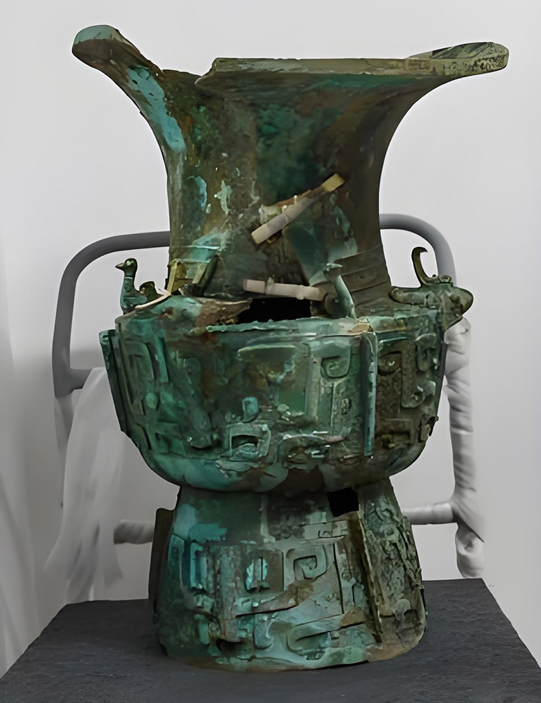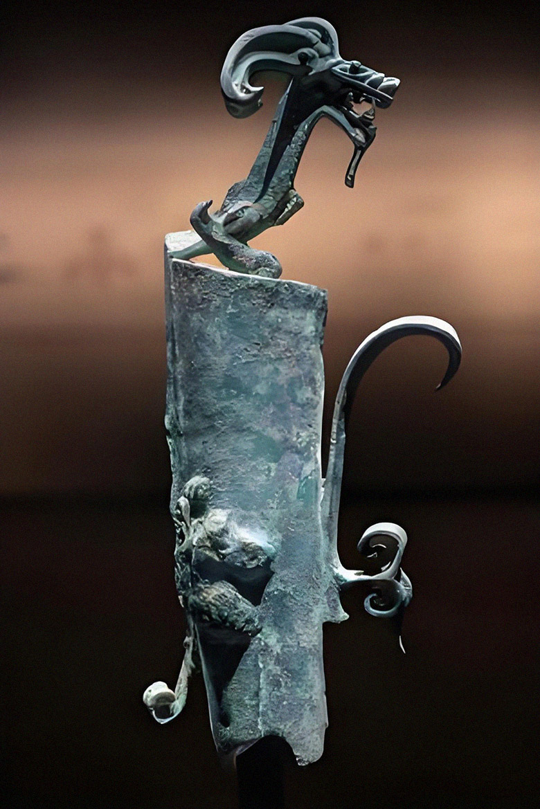 随着社会的发展,尤其是与中原文明交流的加深,王权逐渐崛起。晚期三星堆文化(相当于殷墟文化时期)的青铜器物中,尊、罍等礼器的数量增多,这些礼器与中原商文化的礼器形制相似,是王权的象征。值得注意的是,尽管王权崛起并借鉴了中原的礼器制度,三星堆仍未引入文字系统,而是将王权象征融入既有的图像叙事体系——尊、罍等礼器的纹饰被本土化改造,与青铜神树、纵目面具等神器形成组合,既彰显王权地位,又维系神权的核心主导作用。这一时期,神权与王权逐渐走向共生,无文字的传承模式也随之调整,形成了“图像+仪式”的双重保障体系,确保了权力结构转型过程中的文化延续性。