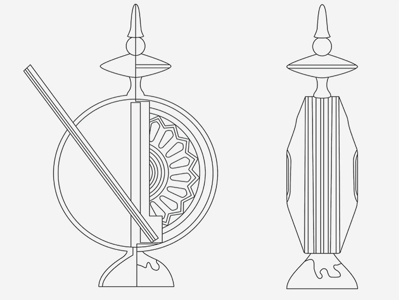 图4:扁圆形酒壶内部结构正面与侧面视图(笔者绘)