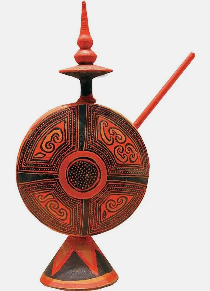 图2:彩漆十一角纹扁圆球形木酒壶,清代,凉山彝族奴隶社会博物馆藏,图片来源:凉山彝族奴隶社会博物馆官网“藏品欣赏”—漆器