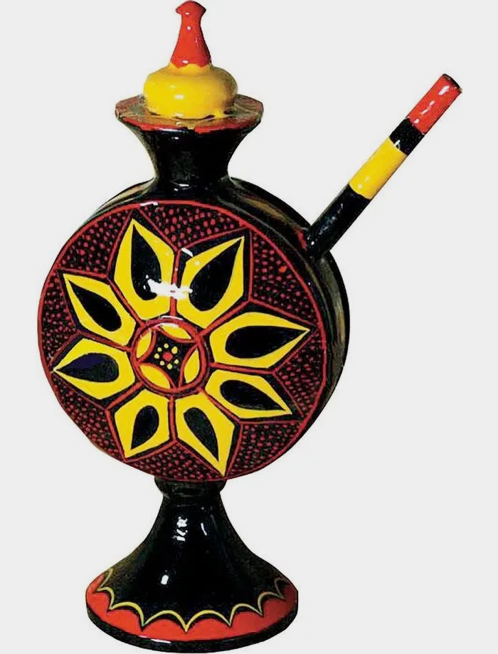 摘 要:彝族漆器以工艺精湛、精巧细腻、色彩绚丽而闻名,漆器酒具中名为“撒尔博”的咂嘴酒壶更是彝族漆器中的精品。自发明以来因其独特巧妙的设计原理、艳丽夺目的纹饰和经久耐用的特性而被彝族人民持续使用至今,也深受国内外游客喜爱。本文从咂嘴酒壶的文化渊源、酒壶造型设计原理、图案纹样构成及图案色彩等方面展开,归纳其造型特点,分析其纹饰和色彩的文化含义及装饰法则,揭示彝族漆器咂嘴酒壶在艺术和实用领域的独特魅力,以便为当代酒具设计的创新和发展提供一些有益的借鉴和启示。